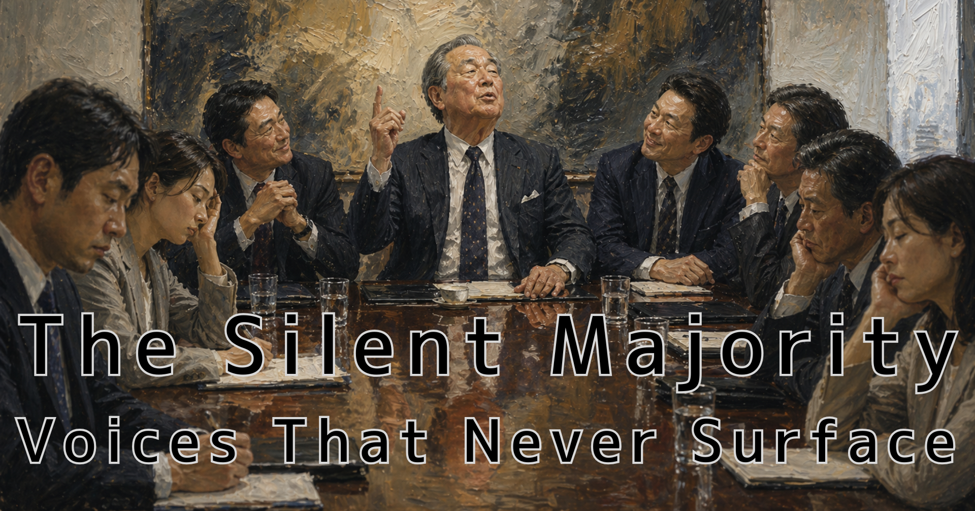 Extreme opinions attract “likes” online, and in meetings, the opinions of those who speak forcefully often dominate the atmosphere. Behind them, however, there are many people who remain silent while feeling that something is not quite right. This time, I would like to think about those voices that never surface, the silent majority.