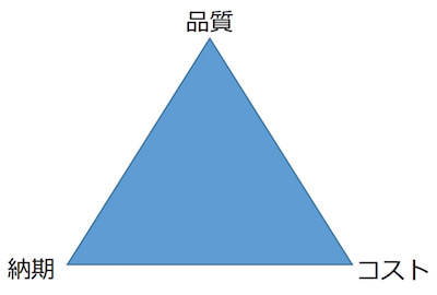 私が従事しているシステムを作る仕事はQCD(品質・費用・納期)のバランスが非常に重要です。この3つの限りある要素は各々が密接に関連しています。例えばミスが絶対に許されない、つまり品質に重点を置くような場合、多くの人員および時間が必要となります。つまり、納期は遅くなり費用は膨らみます。納期に余裕を持たせたつもりだけど、それでも間に合いそうにない、仕方ない人を追加投入しよう!そんな対応をしたところで、必ずしも人の頭数に比例して納期を早められるワケでもありませんから厄介です。コミュニケーションや適正といった相性の問題、トップスピードにのるまでの助走期間が必要であったり、といったことで。ですので今の状況は何が一番、求められているのだろう?を適切に把握して、譲れないこと、見切ること、を考慮しバランスの良い3角形を描かなければいけません。完璧なんて滅多に・・・いや、おそらく、ありませんから。